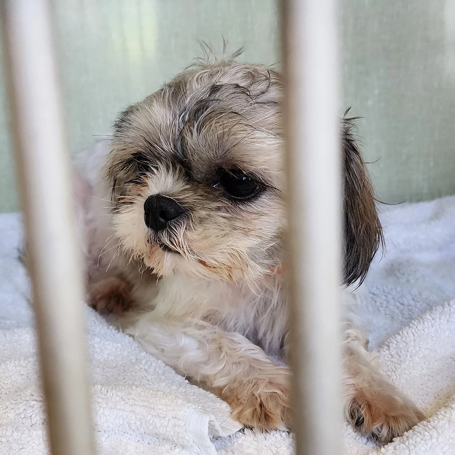 Adorable mill pups post-bath waiting for their new adventures and future homes